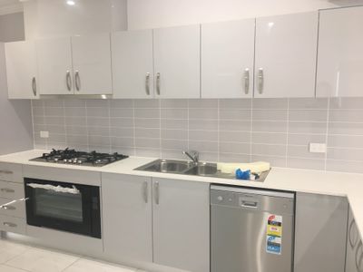 - Polyurethane kitchen with Caesar stone benches, 5 Burner gas cooking with Wok burner, Large inbuilt oven and large pantry