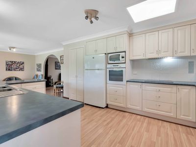 - Large kitchen with spacious pantry, skylight, electric cooking, and floorboards