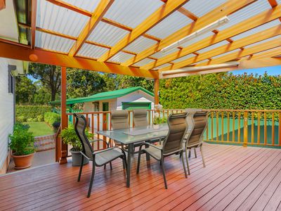 The home opens out onto a stunning covered outdoor entertaining area, perfect for gatherings with family and friends.