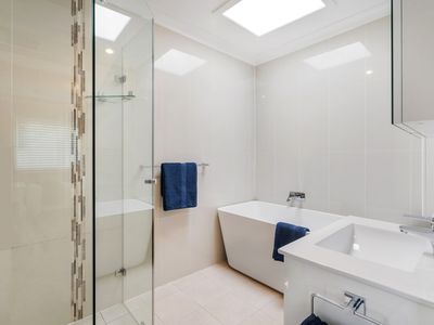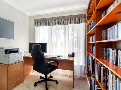 3-4 bedrooms, main with ensuite, all with built ins. 4th bedroom also has an intergrated bookshelf and can be easily occupied as a study or home office.