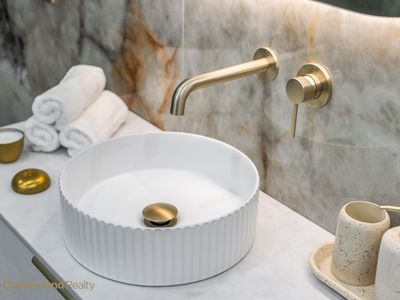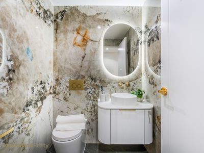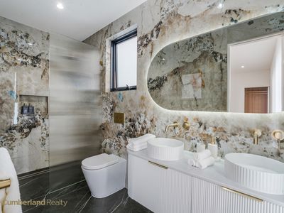 The bathrooms are a standout feature throughout the home. Full-height designer stone tiling, brushed gold fittings, wall-hung vanities & back-lit mirrors elevate these spaces beyond expectation. Every detail has been carefully chosen to create a sense of indulgence and longevity.