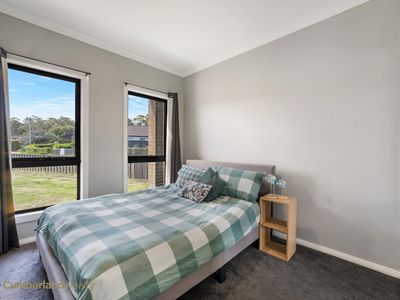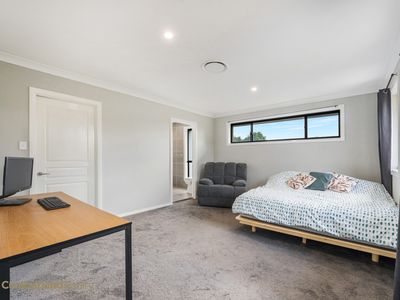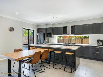 Designed for comfort and entertaining, the home features a light-filled open plan lounge and dining area complemented by a stylish kitchen equipped with 40mm stone benchtops, 900mm stainless steel oven, canopy rangehood, dishwasher, walk-in pantry and a large island bench with double bowl stainless steel sink.