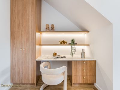 • Custom-built study nook with integrated cabinetry — ideal for homework or working from home