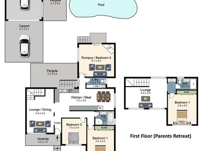 Accommodation includes 3 to 4 bedrooms, highlighted by a private upstairs parents’ retreat with its own ensuite and living area.