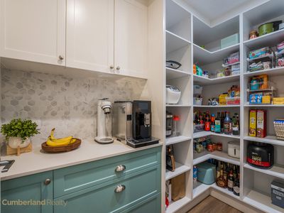 - Designer kitchen with Caesarstone benchtops, custom joinery & butler’s pantry. Premium Bosch appliances including Series 8 integrated dishwasher & pyrolytic self-cleaning oven.