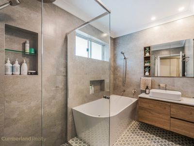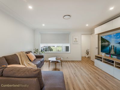 Entertaining & Outdoor Appeal: Designed for year-round entertaining, enjoy a rear tiled veranda with pergola, downlights and ceiling fan, capturing district and Parramatta skyline views. The east-facing backyard offers space, privacy and flexibility for families.